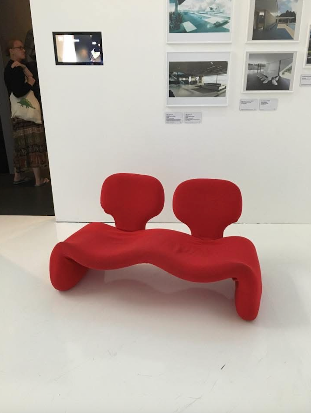 Ask almost anyone what they remember about the production design in 2001 and they’ll bypass the austere, ornate furnishings at the end of the film to mentally plop themselves down in a Djinn–Olivier Mourges’ undulating loungers in the lobby of the space Hilton. We remember those chairs as instantly as we recognize Pierre Paulin’s foamy, curvaceous Ribbon chair from Space: 1999 when it pops up in Blade Runner: 2049. When my partner and I attended a Science Fiction Film exhibition at the Deutsche Kinemathek nine years ago, the Djinn had half a room to itself–no explanation necessary.